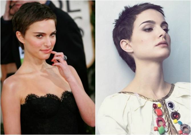 1. Natalie Portman radically solved the issue of hair styling by cutting very short hair, which, by the way, suits her very well!