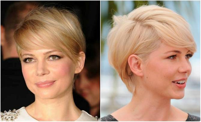 3. A long, asymmetrical bang softens the contours of a short haircut. Michelle Williams looks fantastic!
