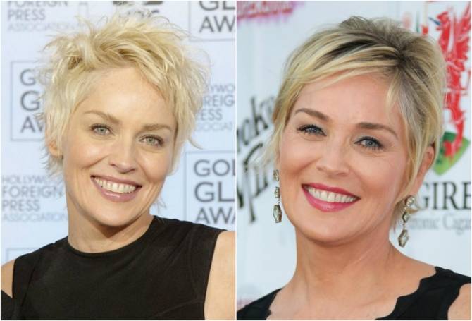 9. Who, if not Sharon Stone, loves and knows how to rock short haircuts! This trick perfectly hides a woman`s age and refreshes the face!