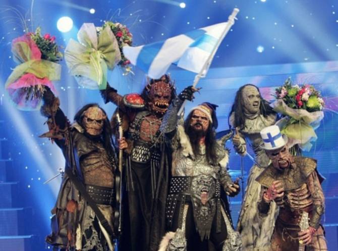 Perhaps the most controversial stage costumes were those of the Finnish group Lordi. The monster images truly shocked the audience. But it must be admitted that the Finns performance turned out bright and stylish. It was impossible to be indifferent to them you either adored them or hated them. In the end there were more admirers and Lordi won `Eurovision`.