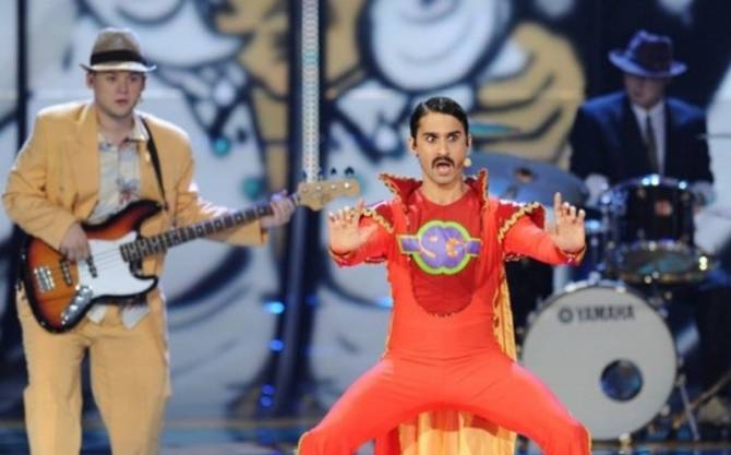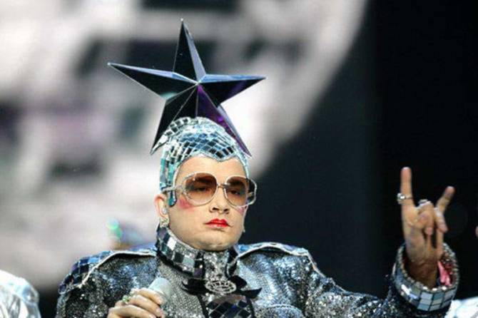 Actor and showman Andrey Danilko is associated with the comedic character Verka Serduchka. Starting with a simple train attendant image Verka gradually transformed into a pop diva. In the continents main song contest Serduchka appeared as a star in every sense of the word. The shiny costume drew attention however it was not enough to get first place.