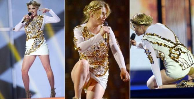 Emma managed to enter the contests history thanks to a rather dubious achievement. She got 21st place which became Italys worst result in the entire history of `Eurovision` participation. However the singer managed to get her minute of fame thanks to a very strange outfit namely gold-colored panties that were visible from under the dress throughout the performance.
