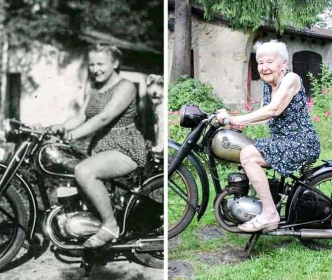 1. `The same motorcycle, the same place, the same girl. Only after 71 years`