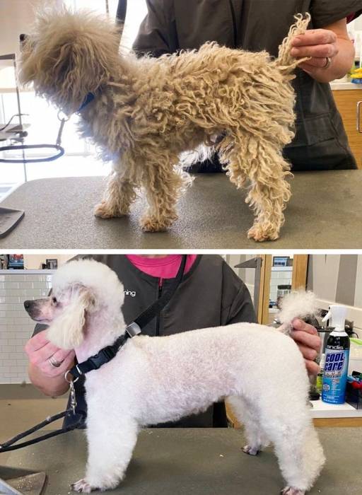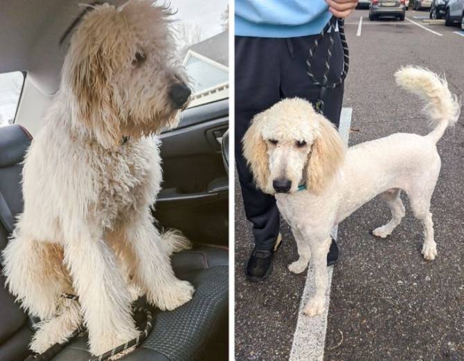 We selected 17 "before and after" photos that prove one trip to the groomer can work wonders.