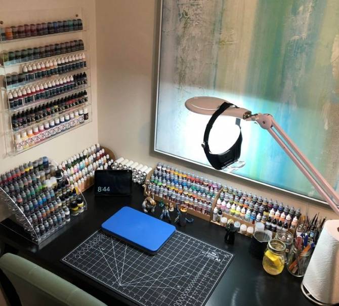 Workspace of a man who is passionate about mini paintings