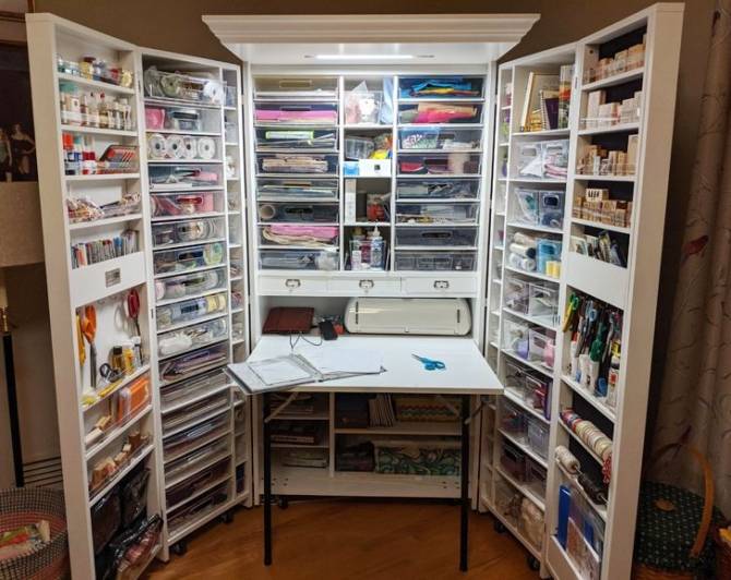 “Craft closet and my moms workspace”