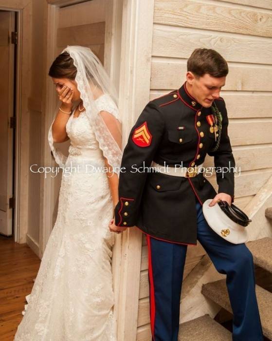 1. Marine Corporal Irwood Caleb sees his bride`s face for the first time in his life!