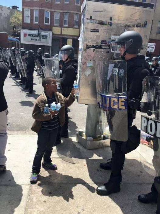 4. During the Baltimore riots, a boy decided to offer water to police officers!