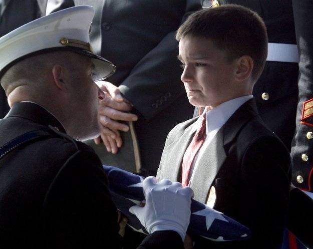 11. 8-year-old Christian Goldinski raises the flag in place of his father who died in Iraq.