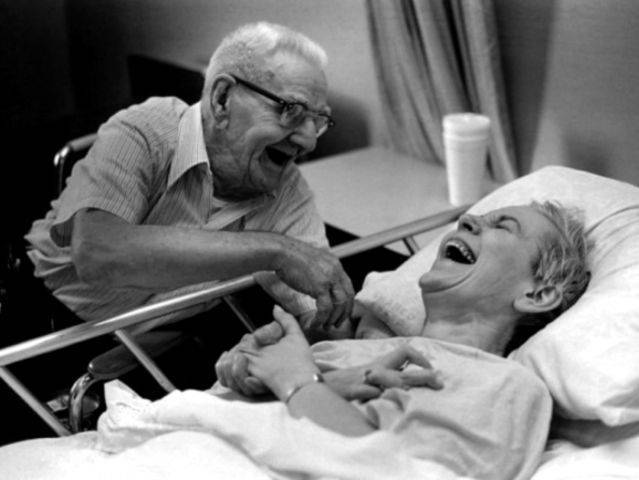 15. Husband makes his wife laugh and enjoy in the hospital bed.