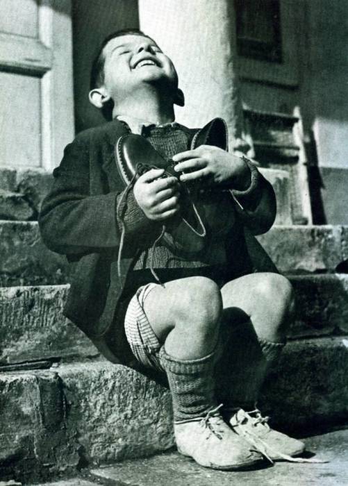 19. 6-year-old orphan from Austria receives his first new pair of shoes!