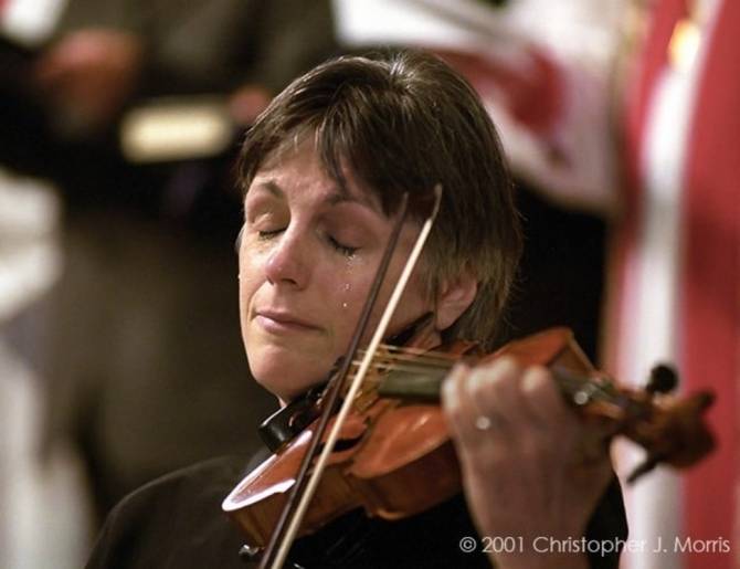 22. Violinist Nancy Dinova cries at the ceremony dedicated to September 11.