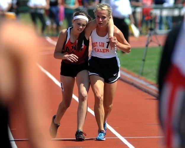29. Megan Vogel carried her competitor Arden McMath to the finish line, even though she lost consciousness.