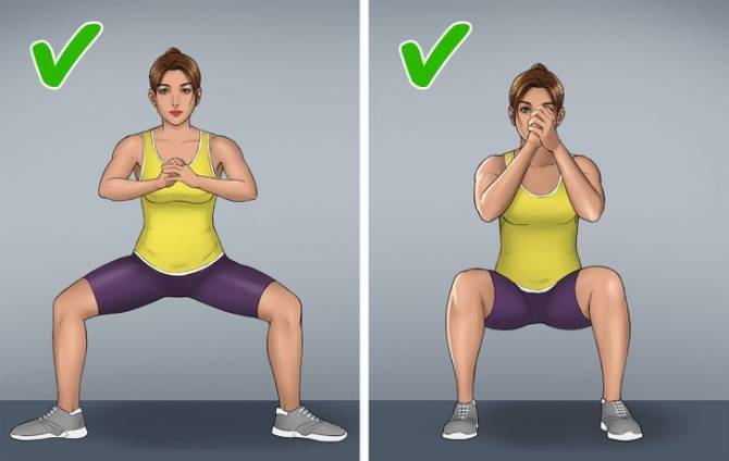 • Knees shouldn`t extend beyond the toe line. To improve your technique, think of lowering your glutes rather than bending your legs.