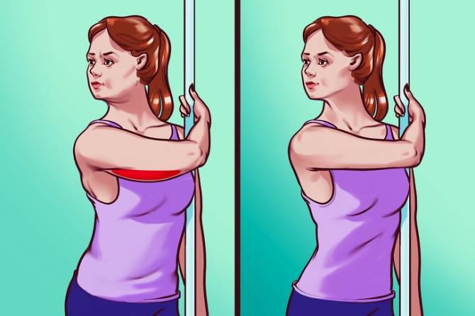 Static shoulder muscle stretch. In case of tension in the shoulders, vision can deteriorate or headaches can be constant.