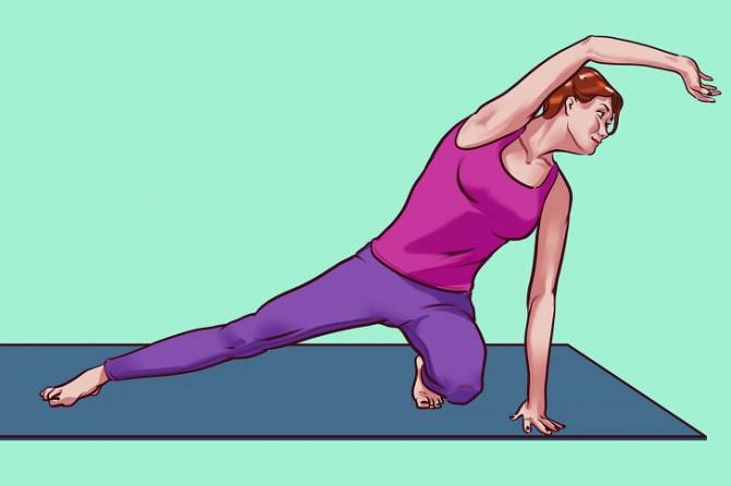 Stretching of the inner abdominal and oblique muscles. This exercise helps get rid of fat around the waist.