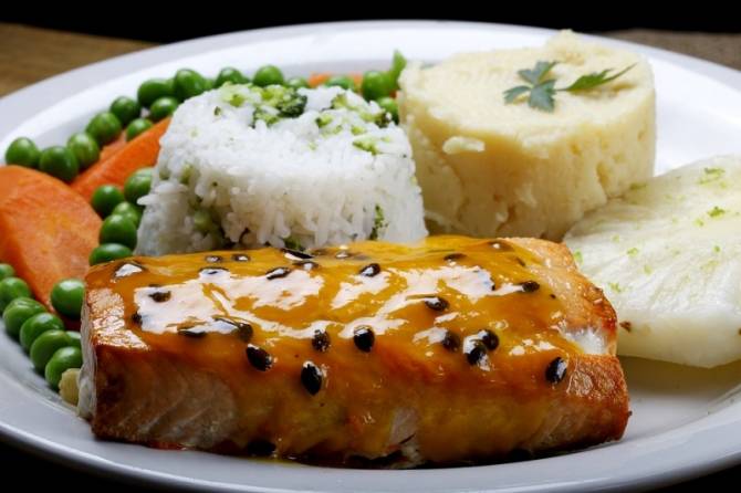 3. Lunch: 200 g rice, 150 g baked, stewed or boiled fish, 200 g vegetable salad.