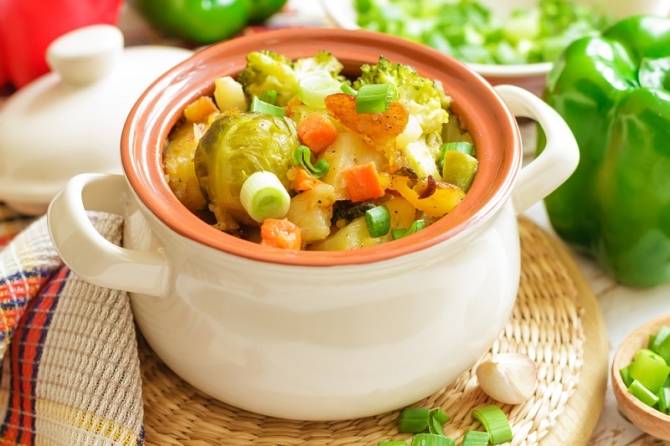 5. Dinner: 200 g vegetable stew, 150 g stewed chicken. Prepare the stew with sunflower oil.