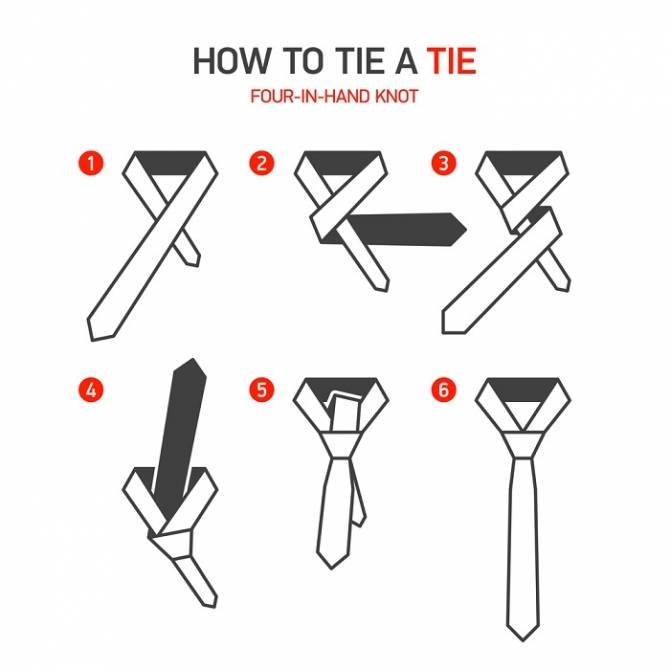 The `Pratt` knot is unpretentious and tied relatively simply, the only thing to consider – it is tied with the seam outward, but then the shirt collar covers this seam.