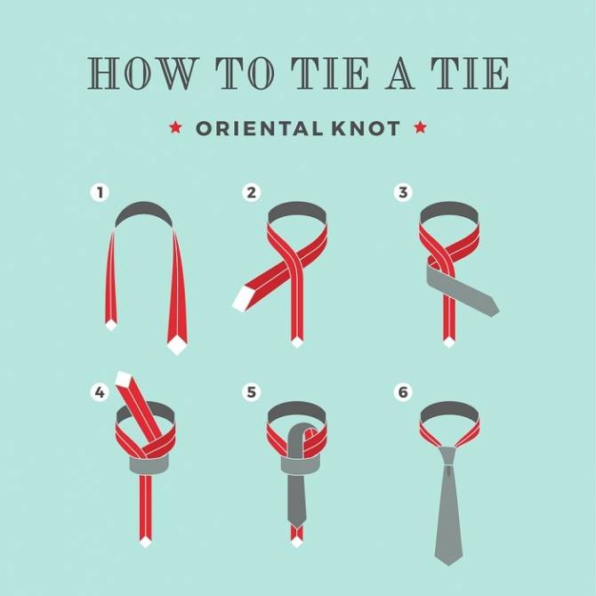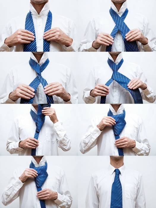 For example, helping dad or husband get ready for a meeting or brother for a friend`s wedding. You never know when hand dexterity and necktie tying techniques will come in handy! Even if the men in your circle do not appreciate classic style, the skill of tying a necktie can be useful for yourself – modern, thin scarf knots come directly from men`s fashion.