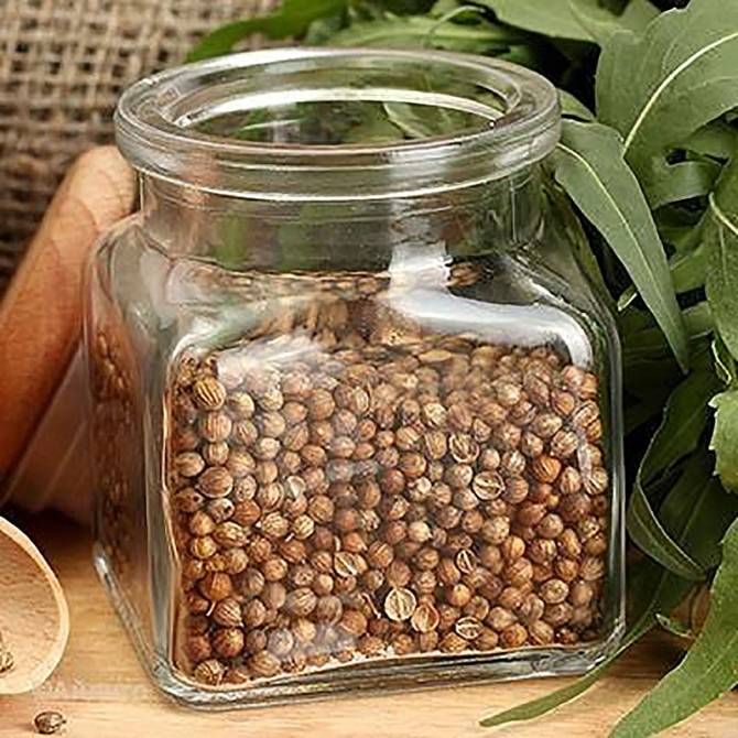 Coriander blooms in midsummer, and then the fruits form in a yellowish-brown color. The seeds are used as a spice that perfectly complements meat and fish dishes, soups, and sauces, and the leaves are used as a snack, often added to salads.