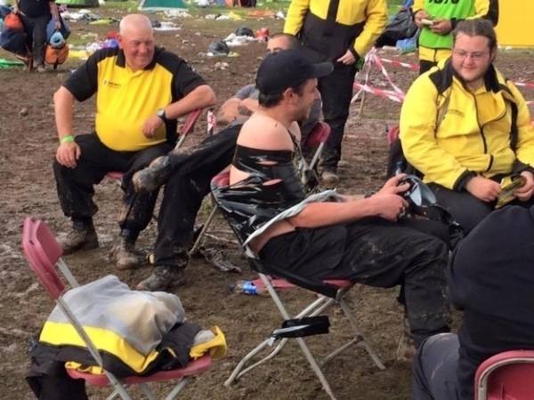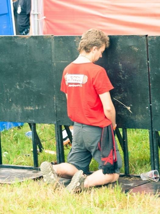Standing duty at the barrier isn`t particularly good for one reason. Volunteers standing there are regularly splashed with yellow liquid from cups, and it`s not beer. Simply, some people are too lazy to go to the toilet, and they think their little mischief won`t be noticed....