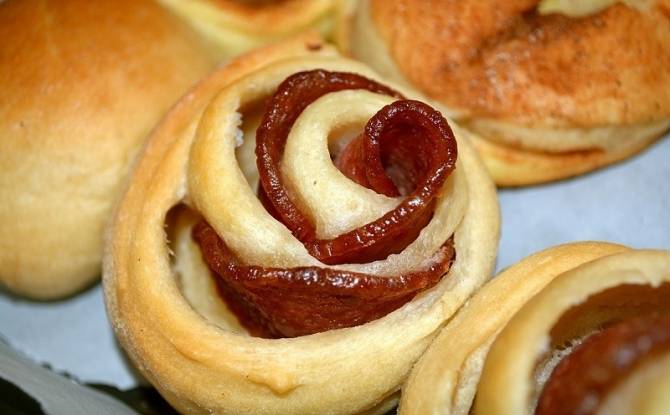 5. You can brush the top of the roses with egg yolk and sprinkle with poppy seeds or sesame seeds. Bake the rolls in the oven at 180 degrees for 20-25 minutes.
