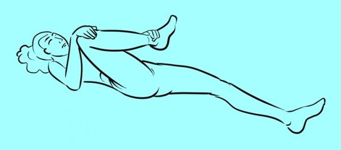 2. Hold the bent leg with both hands and slowly move it towards your chest as far as possible. Hold in this position for at least 30 seconds.