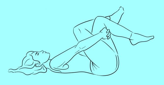 2. Cross your legs as shown in the picture, holding them with your hands. Stay in this position for 30 seconds or more.