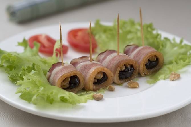 As a bonus, we offer a quick recipe for bacon rolls with dried prunes and walnuts.