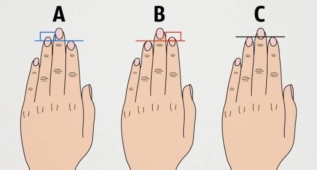 Look at your fingers, compare their lengths with the samples shown in the image and read the main characteristics of your personality.