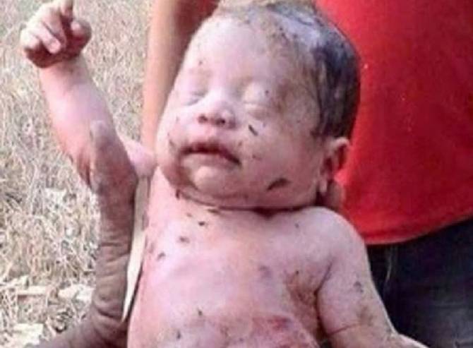 The woman started digging in the ground at the tree trunk and unexpectedly noticed a child`s leg. She immediately called the police. The baby, who was buried in the ground and was alive, had more than a dozen knife stabs.
